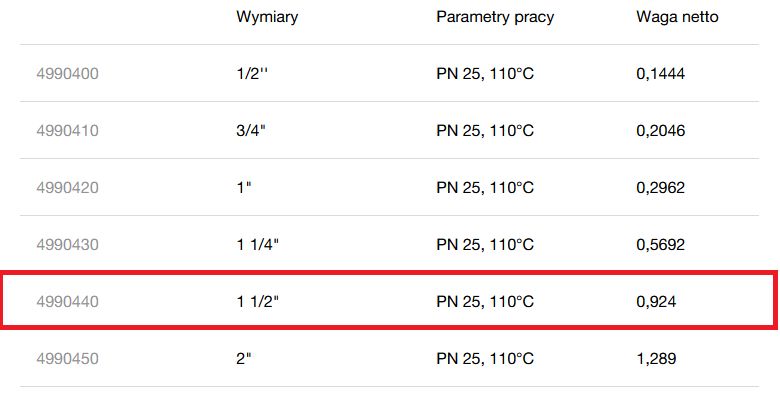 Temperatura maksymalna: 110°C (dla 1,0 MPa)
