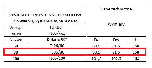 Zastosowanie: systemy kominowe TURBO, kotły kondensacyjne, kotły z zamkniętą komorą spalania