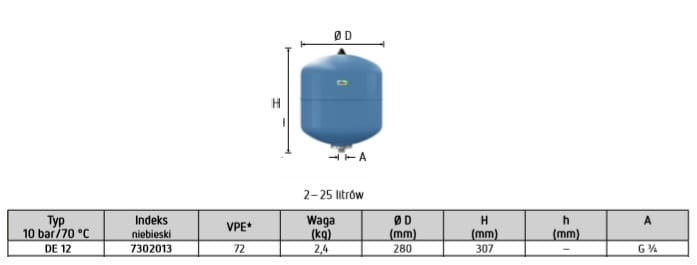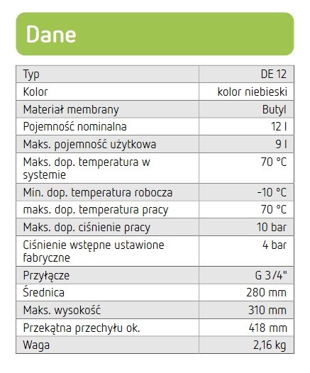 Naczynie przeponowe do ciepłej wody użytkowej REFLEX Refix DE-12, 12 litrów, 10 bar, kod 7302000