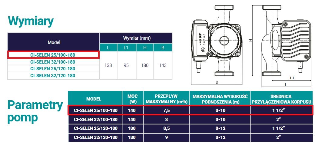 Model SELENIO 25/100/180 został wyposażony w centralną śrubę odpowietrzającą oraz zestaw montażowy zawierający półśrubunki i przewód zasilający, co znacznie ułatwia instalację. Urządzenie spełnia normy efektywności energetycznej, oferując niski współczynnik EEI d 0,23, co przekłada się na realne oszczędności eksploatacyjne.