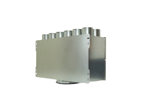 Rozdzielacz przelotowy dwurzędowy PRODMAX SK 12x75/200D to element systemu wentylacyjnego, zaprojektowany do sprawnego i równomiernego rozdziału powietrza w instalacjach nawiewnych oraz wywiewnych. Dzięki dwunastu króćcom o średnicy 75 mm umożliwia podłączenie wielu przewodów wentylacyjnych, co znacząco ułatwia rozprowadzenie powietrza z jednego kanału głównego do wielu pomieszczeń jednocześnie.