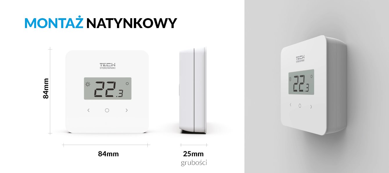 Strona główna » Ogrzewanie » Sterowanie » TECH » TECH Przewodowy regulator pokojowy dwustanowy - duże cyfry (panel przedni ze szkła) biały T-2.1