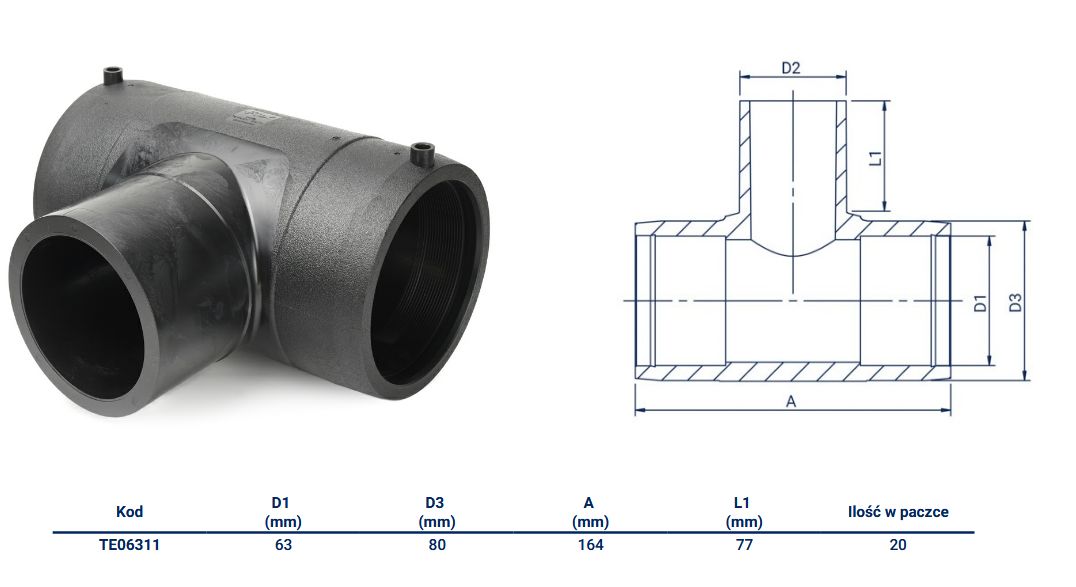 Trójnik elektrooporowy PE100RC d 63 FOX