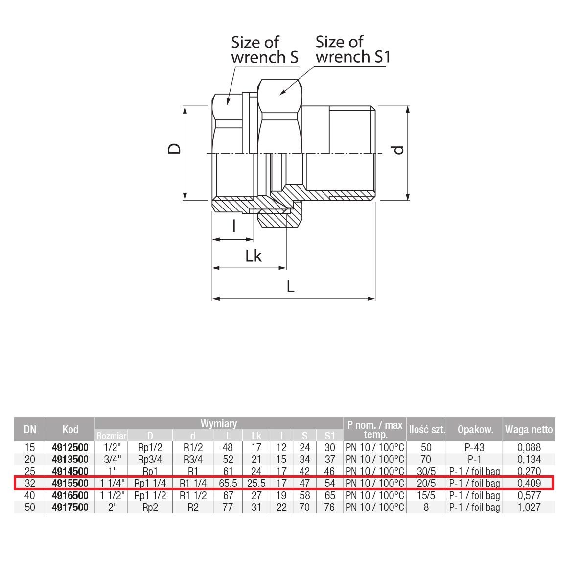 Rodzaj połączenia: Gwint zewnętrzny – gwint wewnętrzny