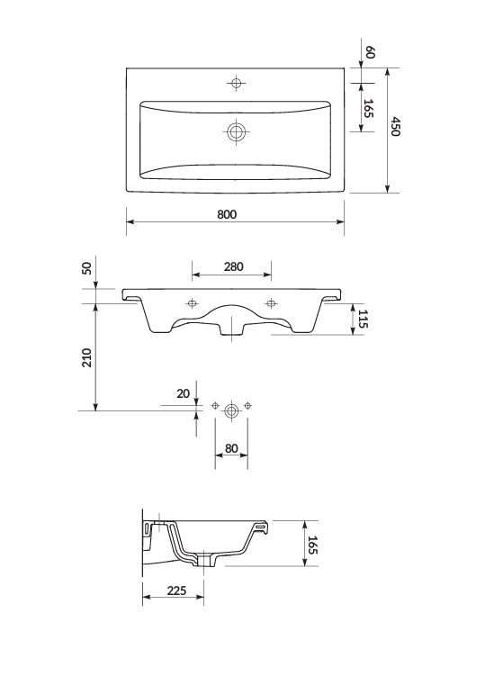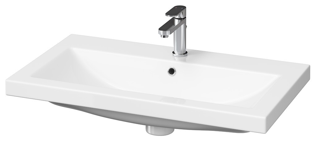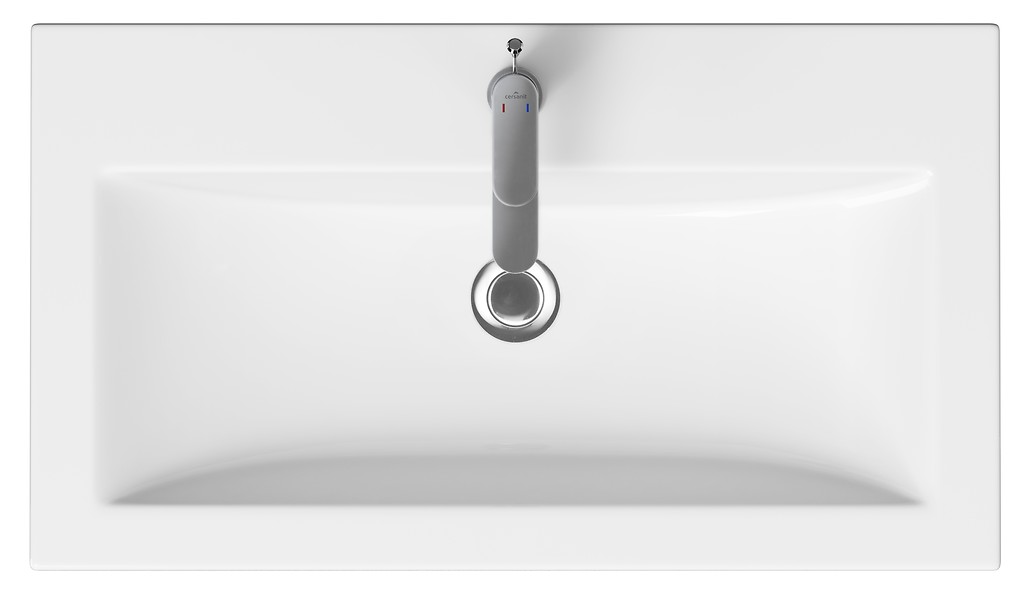 Prostokątna umywalka ceramiczna COMO 80 posiada otwór na armaturę i przelew w centralnej części. Umywalkę można zamontować na meblach z serii MODUO, MELAR, MESTA, SMART, COLOUR oraz STILLO.