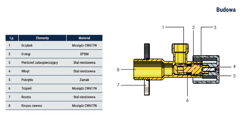 Korpus wykonano z wysokiej jakości mosiądzu CW617N, odpornego na korozję.