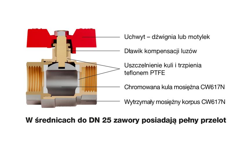 Zawór kulowy wodny 3/4" ( DN20) W/W uchwyt MOTYL OMAX VALVEX