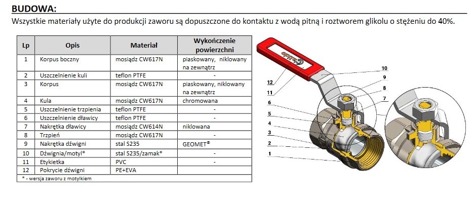 Wszystkie zawory (za wyjątkiem tych oznaczonych w sekcji ASORTYMENT odpowiednią uwagą) są znakowane znakiem budowlanym