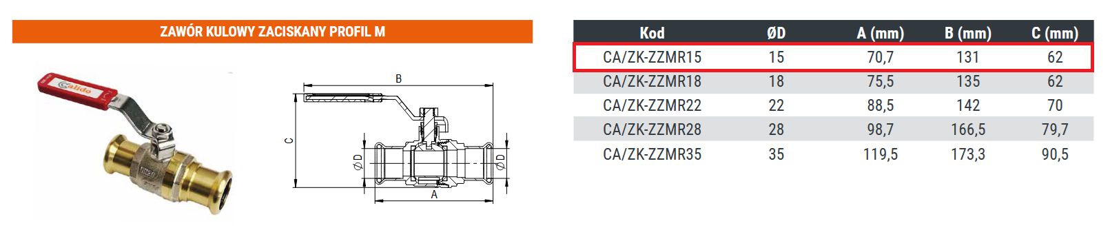 | Średnica nominalna (ØD) | 15 mm |