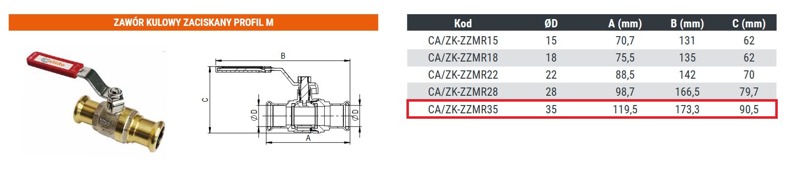 Zawór kulowy z końcówkami zaciskowymi – standard Profil M