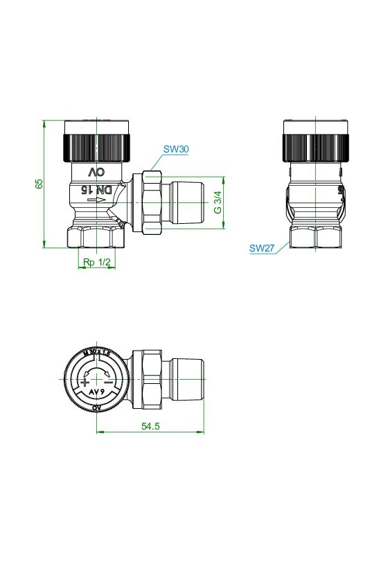 Zawór typoszeregu RFV 9, DN15-1/2, kątowy OVENTROPZawór typoszeregu RFV 9, DN15-1/2, kątowy OVENTROP